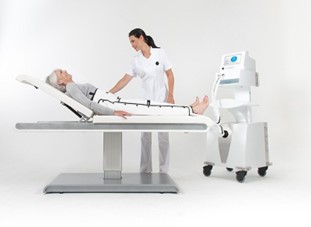Je vous revêts une combinaison composée d’une double couche d'air et gel, qui recouvre les membres inférieurs et l’abdomen (qui représentent 65 % du volume sanguin corporel). Ce soin génère des stimulations en grande quantité et de faible intensité et déclenche des effets veineux lymphatiques en profondeur.